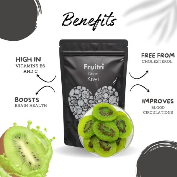 • Dried kiwi is a natural digestive aid packed with enzymes, fiber, and potassium, to keep electrolytes in check. They are also a good source of protective antioxidants and immunity-boosting vitamins. Enjoy them as a healthy snack or dip them in chocolate for a real treat!