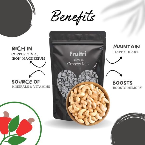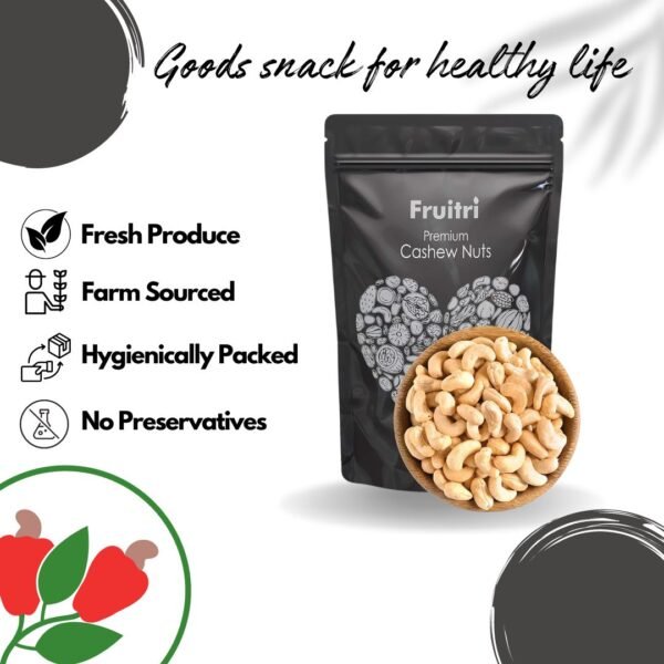 - Premium Quality: Fruitri Premium Cashew Nuts are sourced from select organic cashew farms, ensuring superior taste, texture, and freshness in every nut.